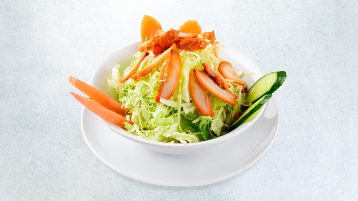 タンドリーチキンと野菜のサラダ (オリジナルドレッシング付き)です。