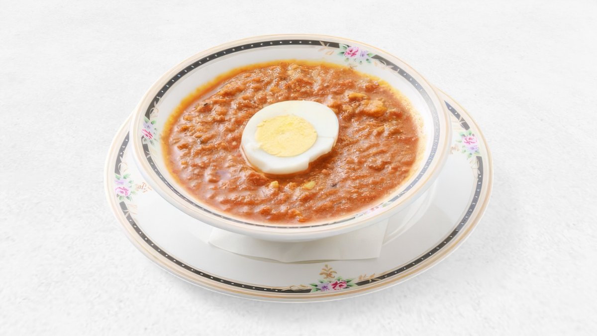 羊ひき肉と玉ねぎとトマトとゆで卵をコトコトしっかり煮込みスパイスで仕上げた辛口カレーです。
