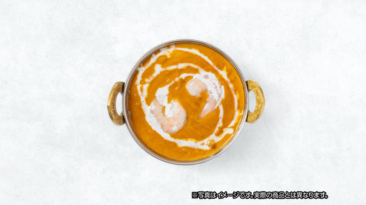 海老と玉ねぎとトマトをコトコトしっかり煮込みスパイスで仕上げたカレーです。