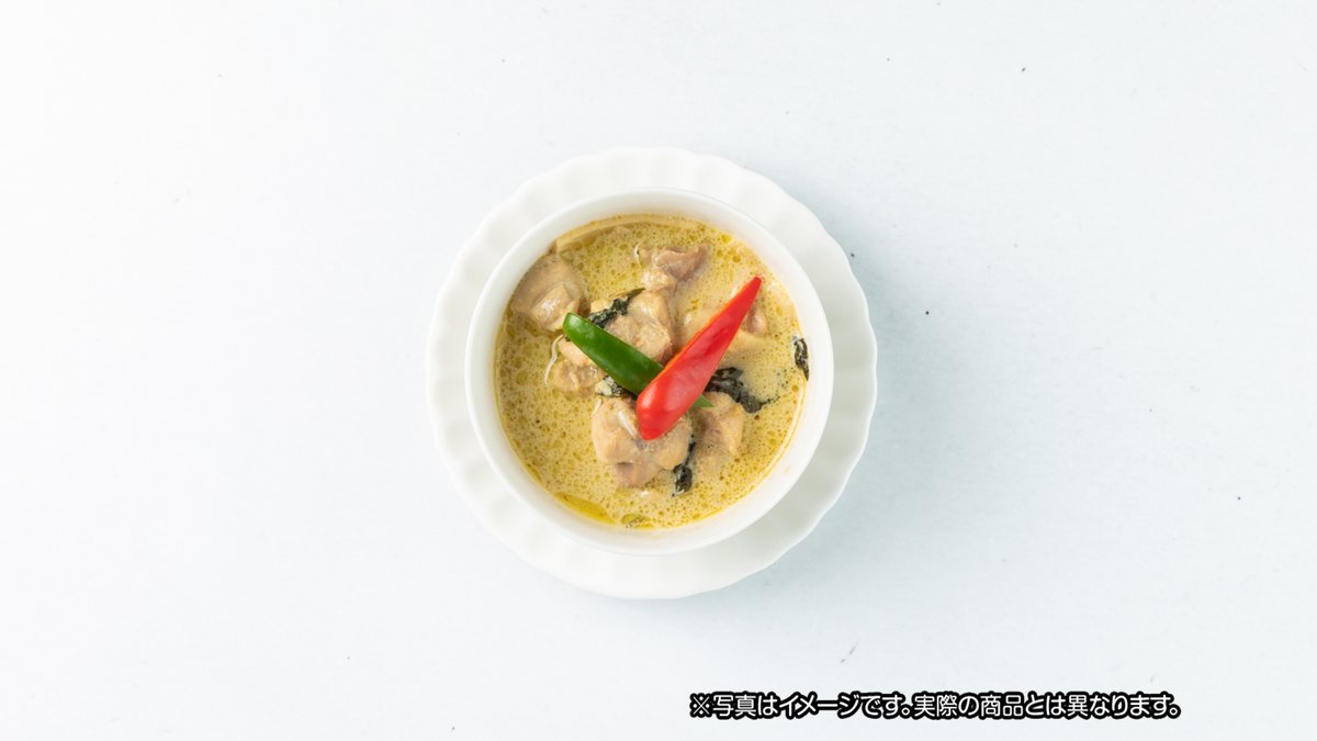 チキンと玉ねぎとピーマンをコトコトじっくり煮込みスパイスで仕上げたカレーです。