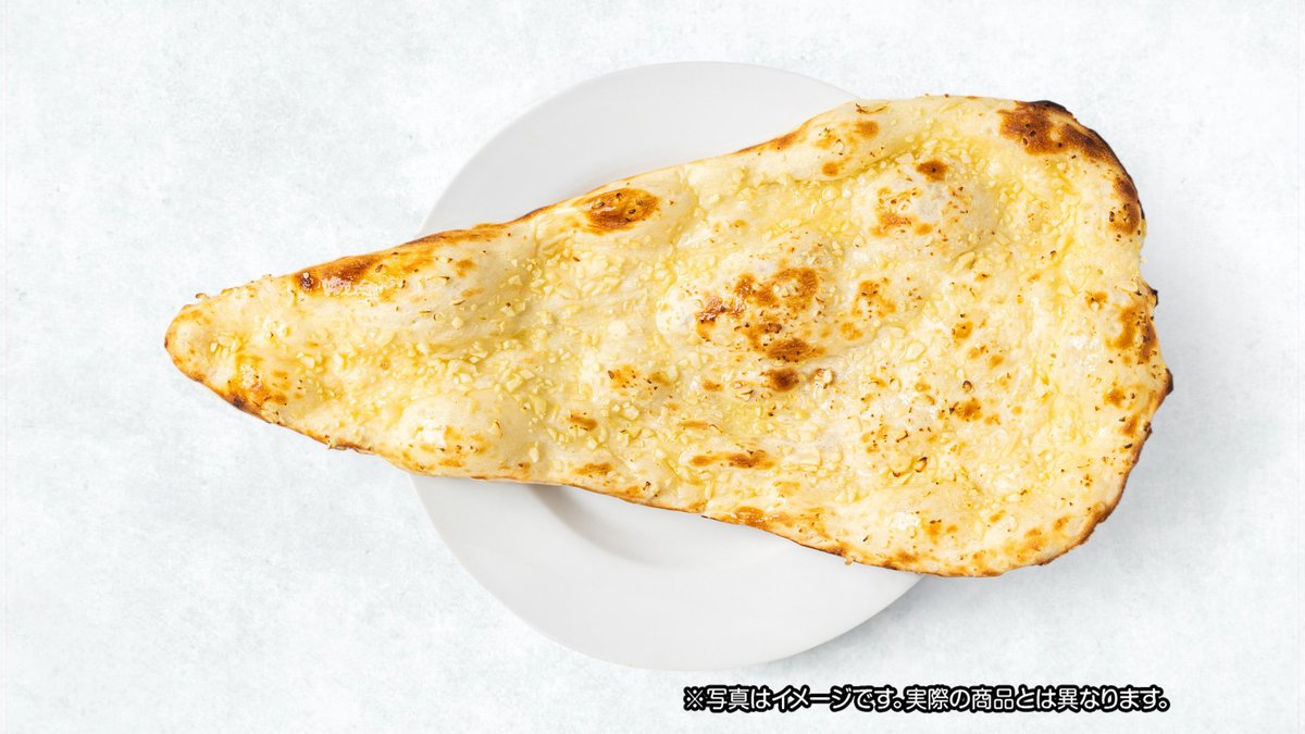 ガーリックをトッピングして焼き上げたインドのパンです。