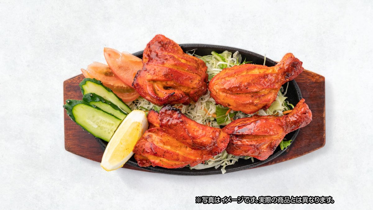 骨付きチキンをスパイシーなヨーグルトソースに漬け込み炭火焼きした料理です。