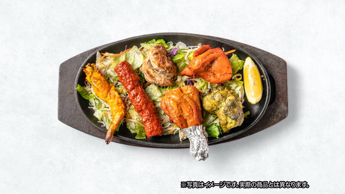 手羽先、タンドーリチキン、ガーリックティッカ、チキンティッカ、マライティッカシークカバブ、タンドーリ海老、フィッシュティッカの中から5種類お選びください。