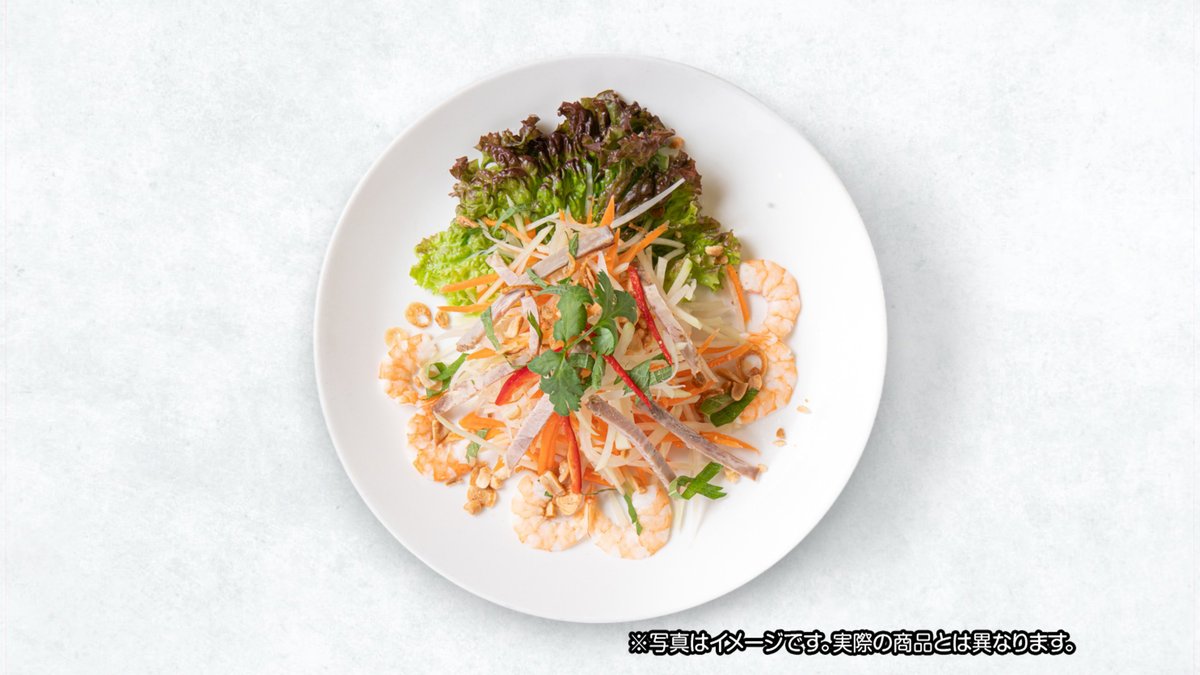 チキンを新鮮野菜にトッピングしたインド風サラダです。