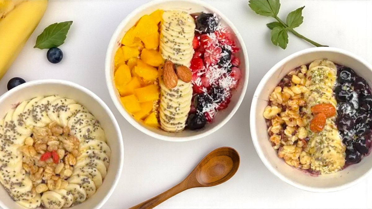 栄養豊富なスーパーフード、アサイーをベースにした冷たくて美味しいヘルシーボウルです。