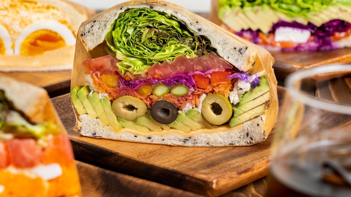 こだわりの野菜や果物たっぷりのボリュームサンドイッチです。