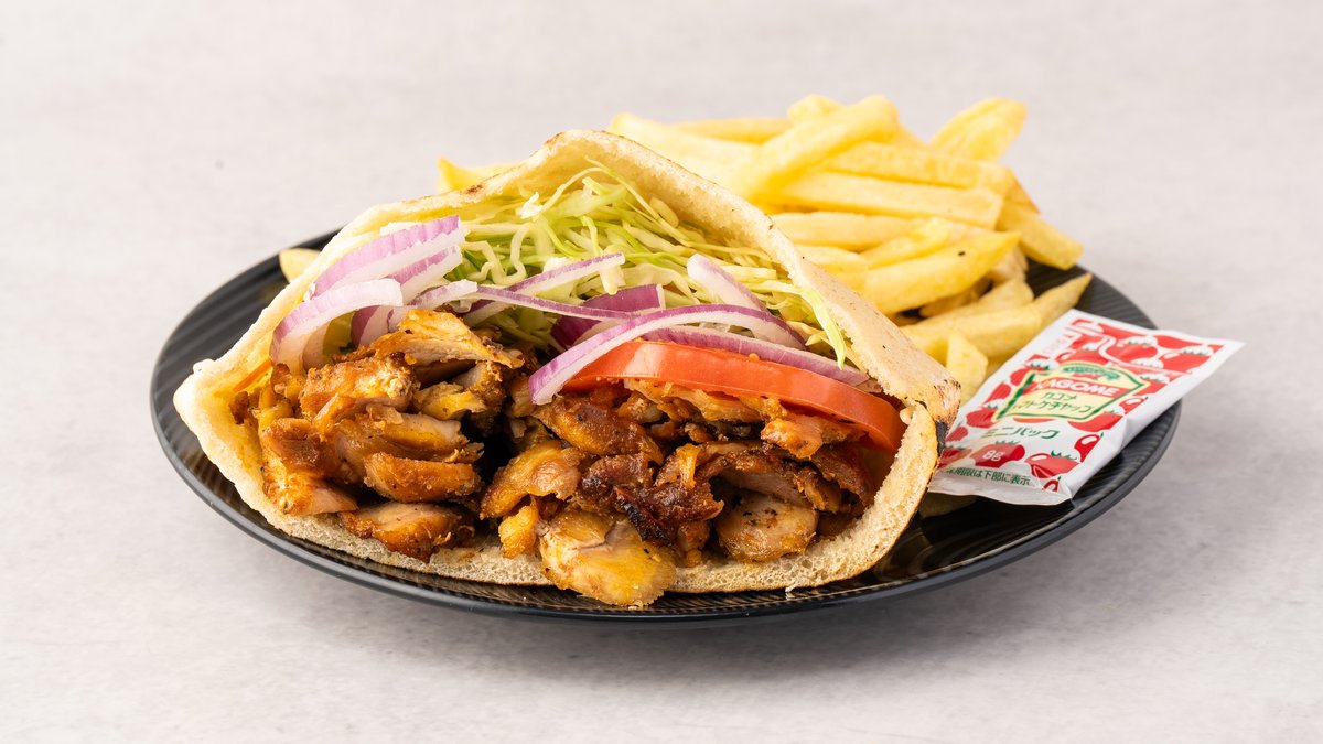 ケバブサンドとカリッと揚がったポテトのセットで満足感倍増です。