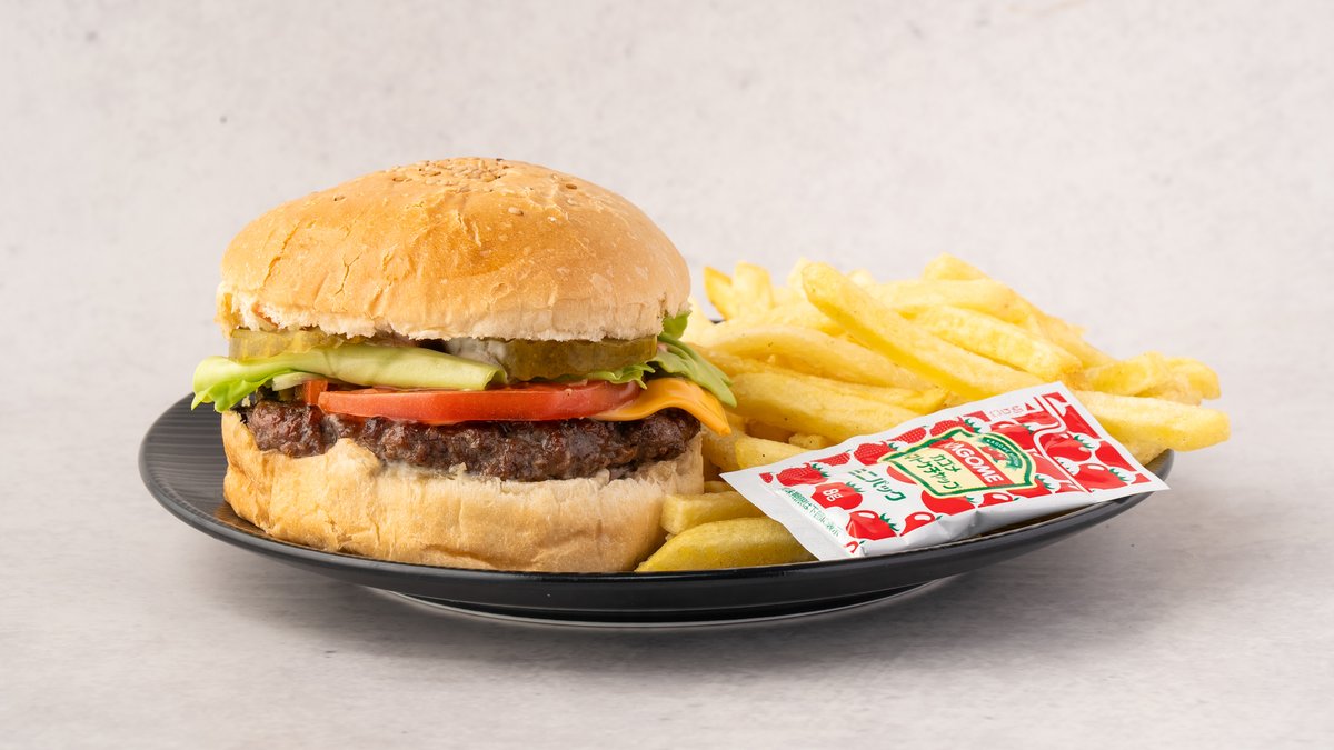 ジューシーなビーフバーガーとサクサクポテトのゴージャスな組み合わせです。