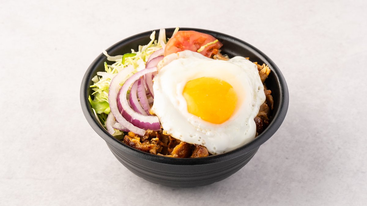 ケバブ肉とまろやかな卵が絡み合う、贅沢で満足感のある丼です。