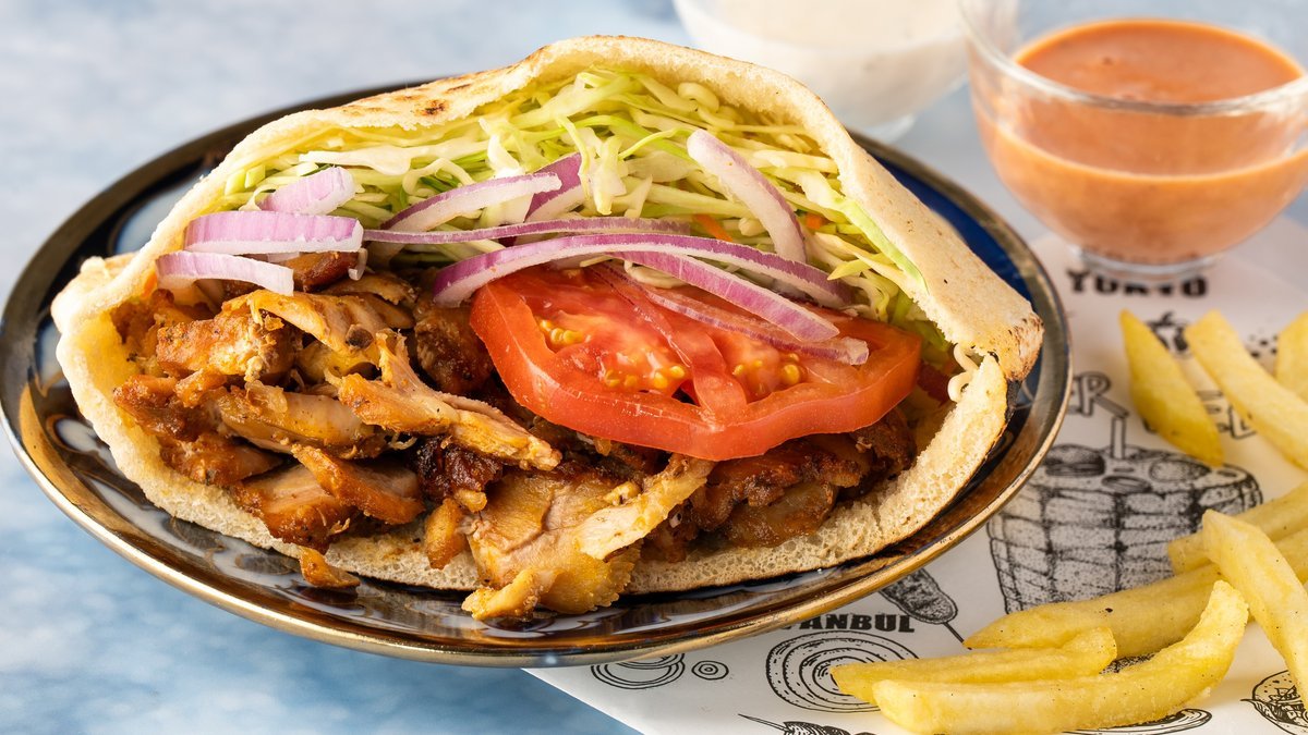 ジューシーなケバブ肉と新鮮な野菜をサンドした食べ応え満点の一品です。