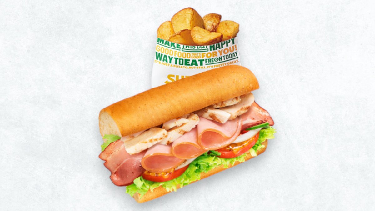 サンドイッチ3つ(生ハム&マスカルポーネ+サラダチキン+ツナ)とポテトSサイズ3個・おまかせの焼き菓子3個を組合わせたセットです。 【生ハム&マスカルポーネ】 野菜:レタス・トマト・オニオン・ピーマン ドレッシング:バジルソース 【サラダチキン】 野菜:レタス・トマト・オニオン・ピーマン ドレッシング:ハニーマスタードソース 【ツナ】 野菜:レタス・トマト・オニオン・ピーマン ドレッシング:こしょう ※サンドイッチはサブウェイおすすめの作り方でご提供いたします。 ※野菜増量やトッピング等のカスタマイズはお受けできません。
