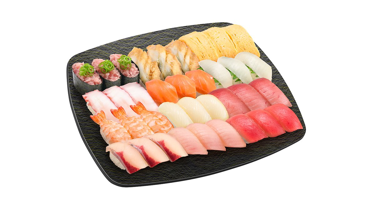 人気ネタ10種が詰まった、欲張りセット! <セット内容> まぐろ・びん長まぐろ・中とろ・えび・いか・えんがわ・サーモン・煮あなご・たまご・ねぎまぐろ軍艦 ※仕入状況により、まぐろの種類が異なる場合がございます。 ※アレルギー情報に関しては、「スシロー」のホームページをご覧ください。 ※仕入状況・販売状況により、セット内容・トッピングが変更になる場合がございます。 ※全てのおすしは「わさび抜き」でご提供しております。別添のわさびをつけてお召し上がりください。 ※セット内容・トッピング変更に関するリクエストは応じておりません。 ※容器が写真と異なる場合がございます。