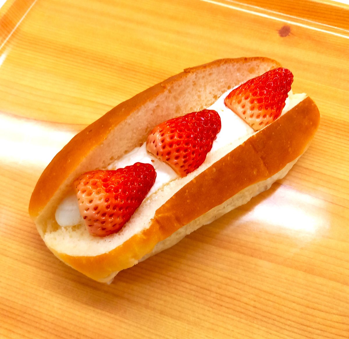 フレッシュなイチゴがパンとバタークリームの甘さのアクセントになっています。