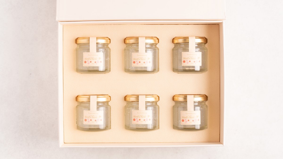 [ギフトボックス] つばめの巣シロップ煮 Edible Bird's Nest 鮮燉燕窩 鲜炖燕窝 90ml × 6本 希少なつばめの巣をシロップ煮にした、贈答にも最適なギフトボックスです。つるりとした食感をお楽しみください。
