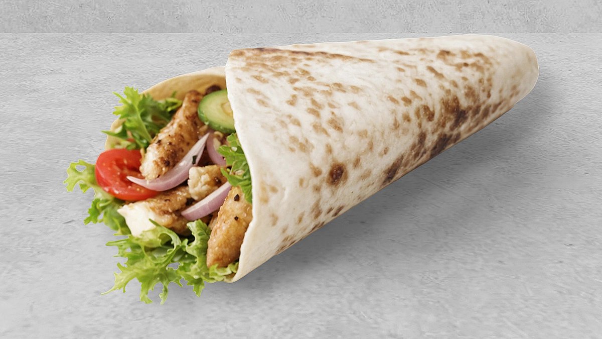 ジューシーなチキンケバブをロールに巻いた一品。手軽に食べられる軽食として最適です。