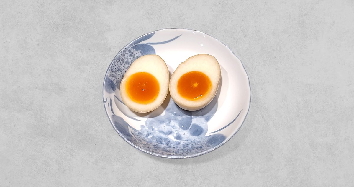 味玉一個とチャーシューが3枚のスペシャル 麺の量=普通で200g、中盛250g、大盛は300gです。麺は北海道産の超強力小麦「ゆめちから に中力粉をブレンドし、毎日自家製で作っています。スープは無化調・無添加で、国産の豚や鶏の素材と北海道産魚介類を合わせたオリジナルの濃厚魚介豚骨スープです。