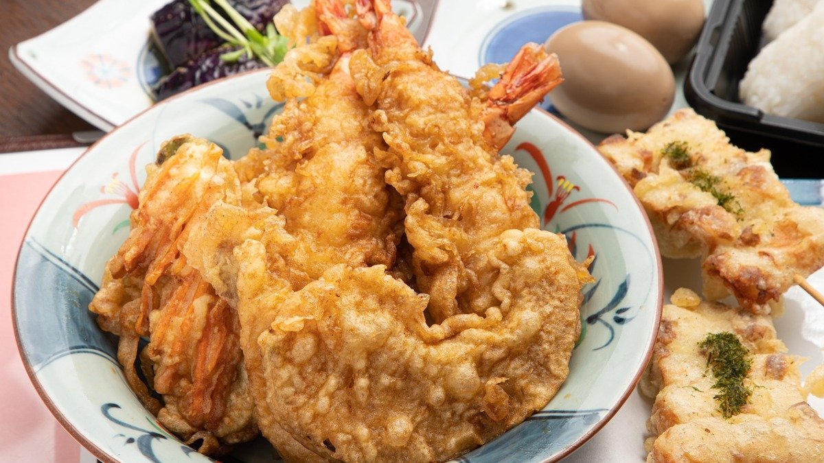 サクッとジューシーに揚げた天丼弁当がおすすめのお店です。ボリューム満点の一品をお楽しみください!🍱