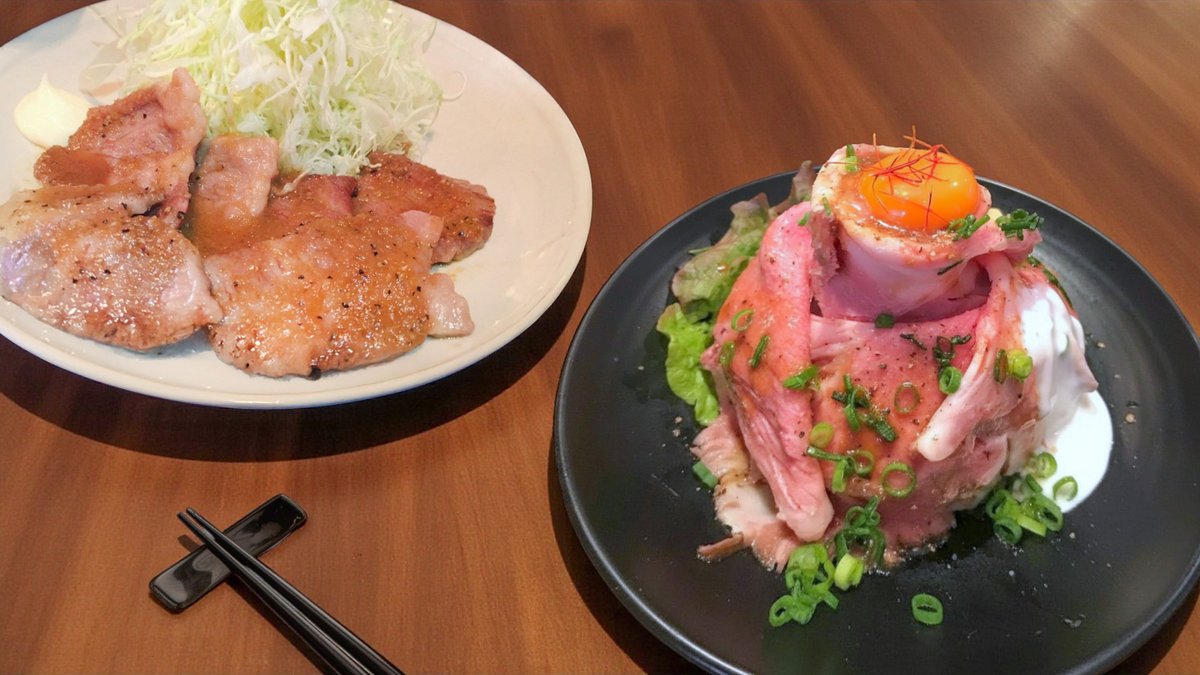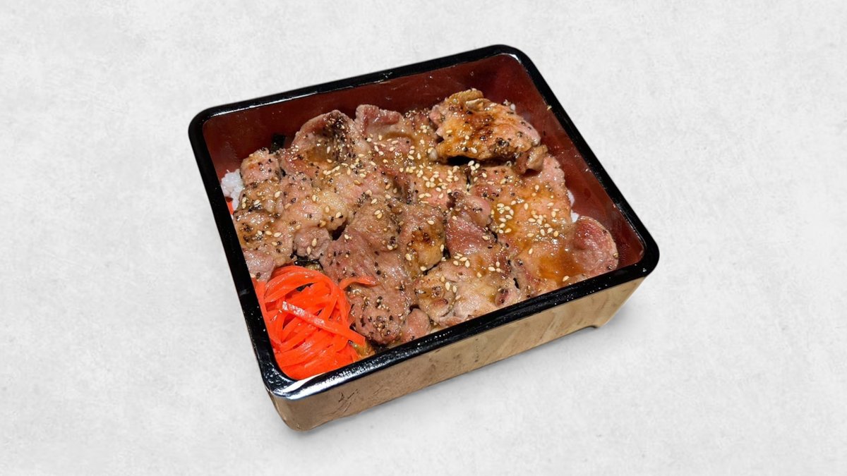 イベリコ豚をふんだんに乗せた贅沢なお重です。焼肉ダレかしょうがダレ、お好きな方をお選びください!