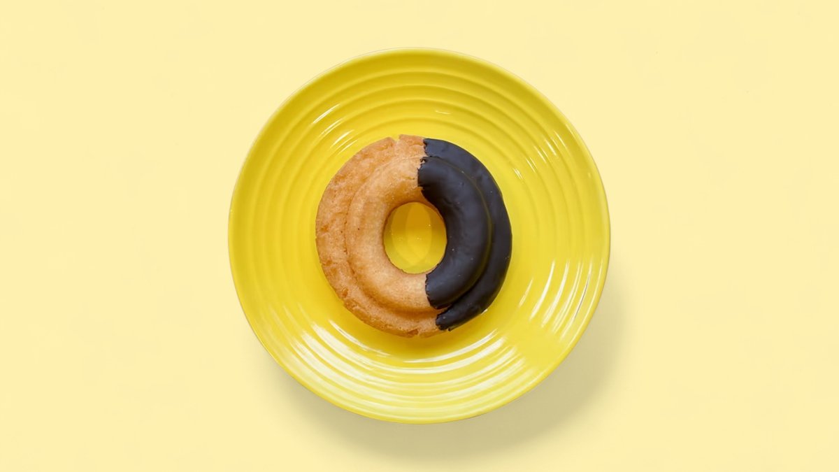 カカオ54%のスイートチョコレートをファッション生地にたっぷりディップ!誰もが大好きなドーナツになっています。