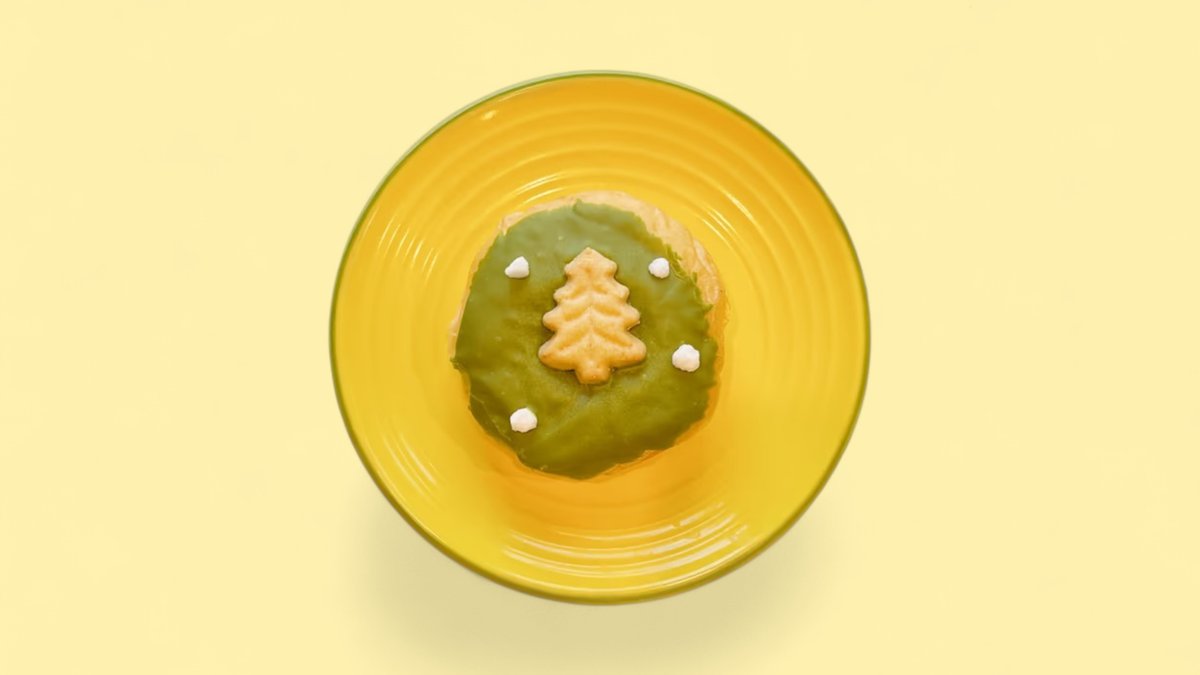 宇治抹茶でつくったチョコレートでコーティング。ツリーのクッキーとポップシュガーで季節感たっぷりのドーナツに仕上げました。