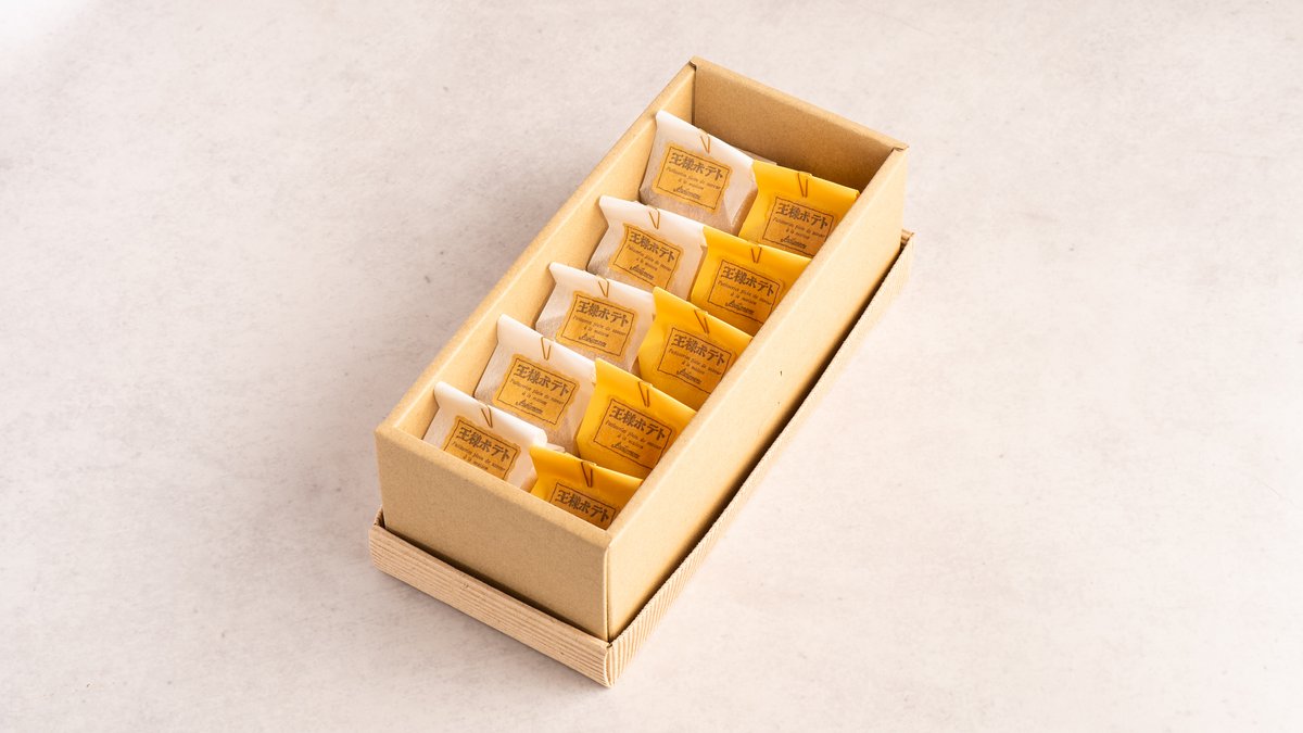 アビニヨン一番の人気商品です!中野の逸品グランプリにて優勝させていただきました自信作です 店主の故郷鹿児島の特産品紅あずまを、本来の甘さ、食感を活かすために、低温でじっくりお店で焼き芋にして程よい粒が残るよう手でむいています 店主がもともと和菓子職人であるため、材料となる白餡も豆から手作りするこだわりです 上質なバターと生クリーム、卵黄をふんだんに使い、ホクホクとしっとりと仕上げました。 「王様ポテト」は、発売50年来、愛されている一品です。