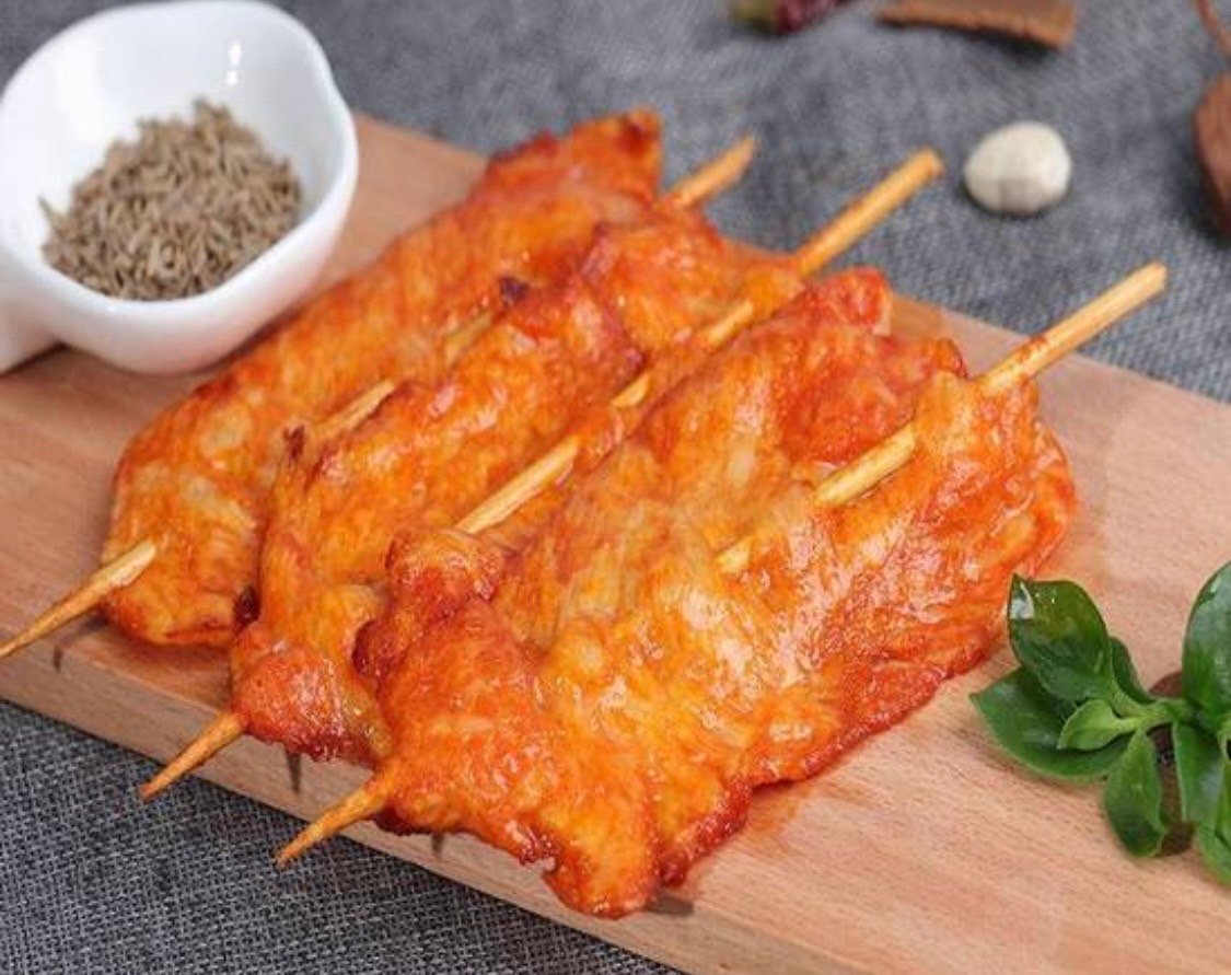 美味しいヒレ串2本セットです。柔らかい沙茶里脊を使用し、伝統的な串焼きの技術で丁寧に調理されています。