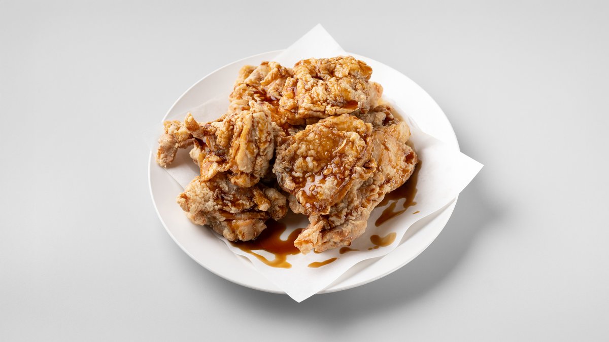 揚げた鶏に自慢のソースをかけました。【内容】唐揚げ5個