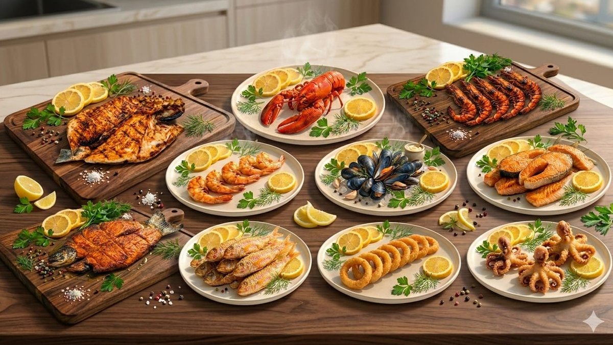 გაუყინავი თევზეულისა და ზღვის პროდუქტების ფართო არჩევანი