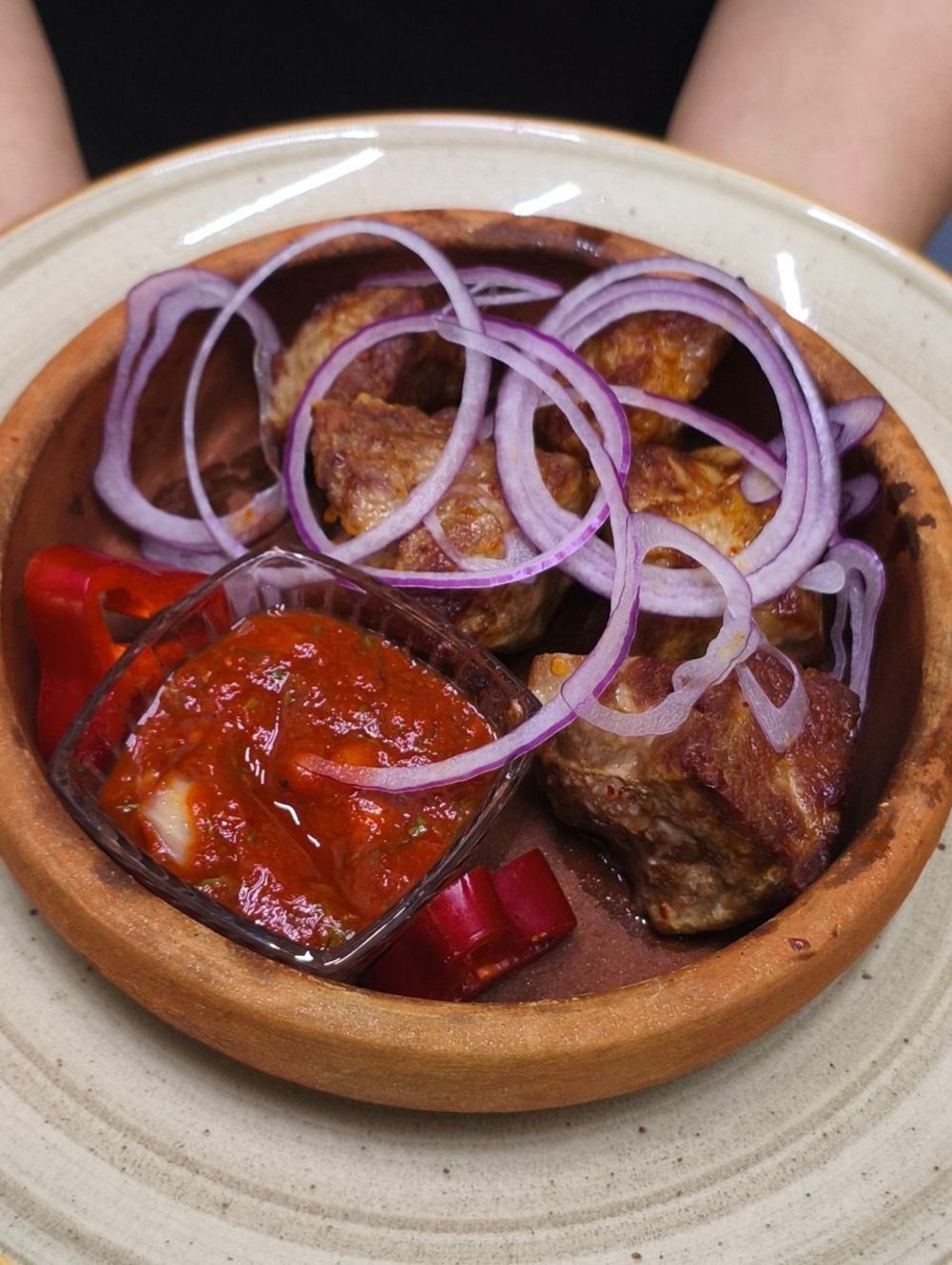 Traditional Georgian chicken dish: fried chicken in cream sauce/Традиционное грузинское блюдо из ципленка: жареный ципленок в соусе из сливок/ტრადიციული ქართული ქათმის კერძი: შემწვარი ქათამი კრემის სოუსში