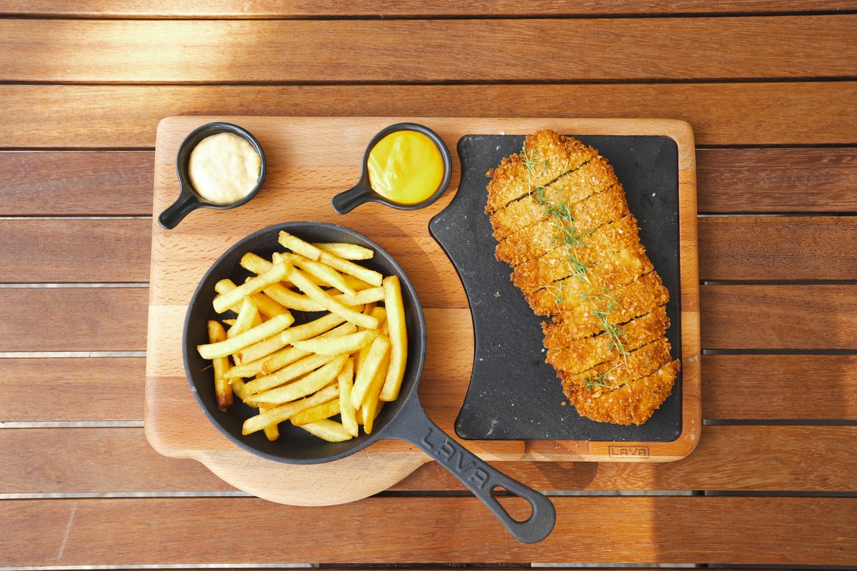 სალათის ფოთოლი აისბერგი, ცეზარის დრესინგი,ქათმის ფილე, პარმეზანი, ჩვენი ჩიფსი Iceberg lettuce, Caesar dressing, chicken fillet, Parmesan, our house-made chips
