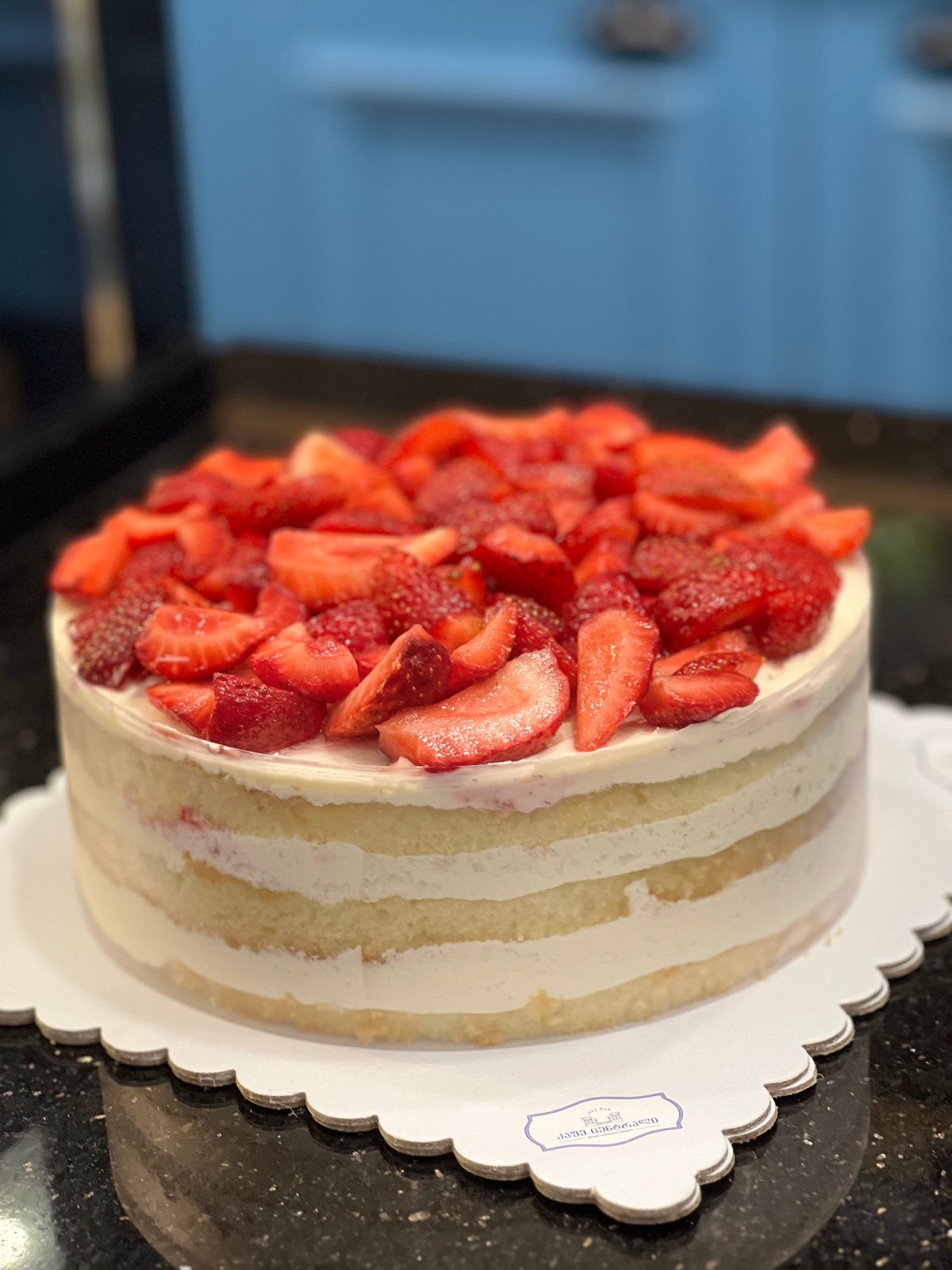 ვანილის ბისკვიტი,ვანილის კრემი,მარწყვი Vanilla biscuit, vanilla cream, strawberries