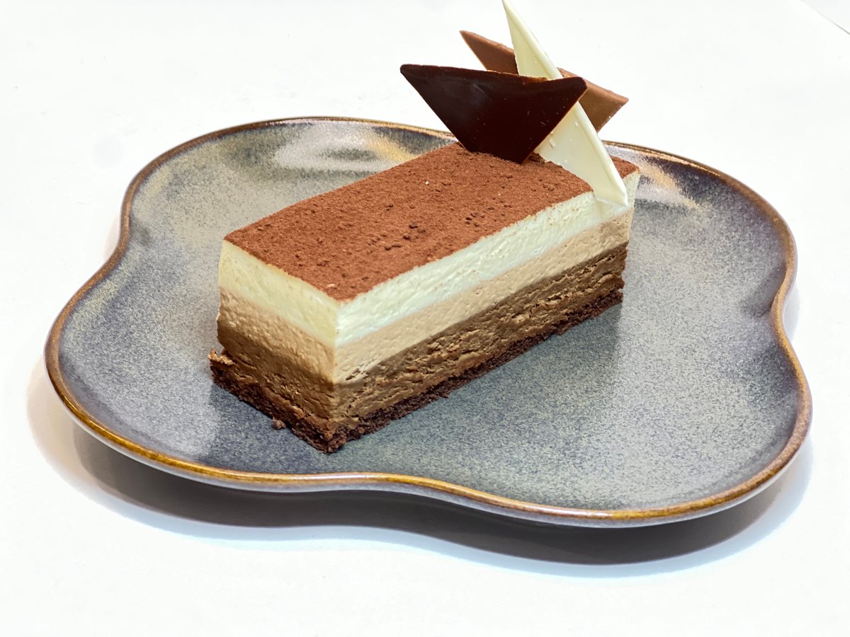 ორცხობილის ძირი,რძიანი შკოლადის მუსი,ქრანჩი,ყავის მუსი Biscuit base, milk chocolate mousse, crunch, coffee mousse