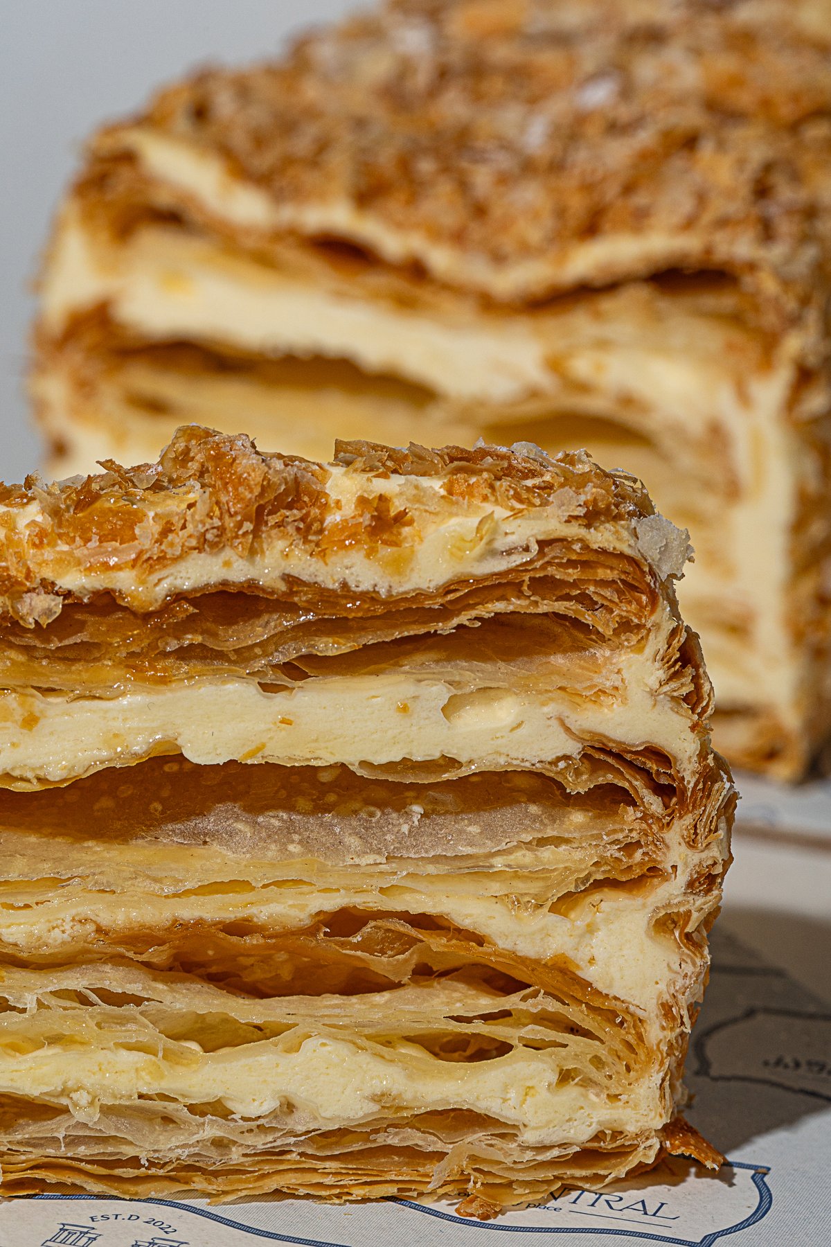 ფენოვანი ცომი,ვანილის კრემი Puff pastry, vanilla cream Allergens: wheat flour, eggs, milk, dairy products"