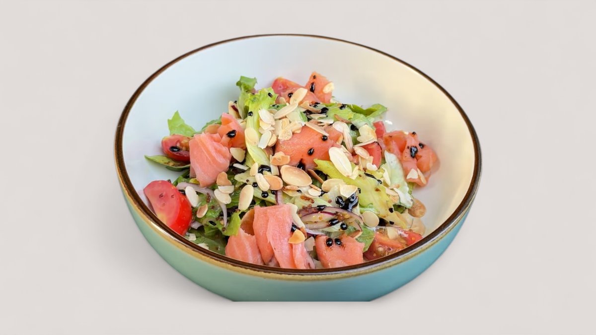 Salad with smoked salmon&honey-mustard dressing