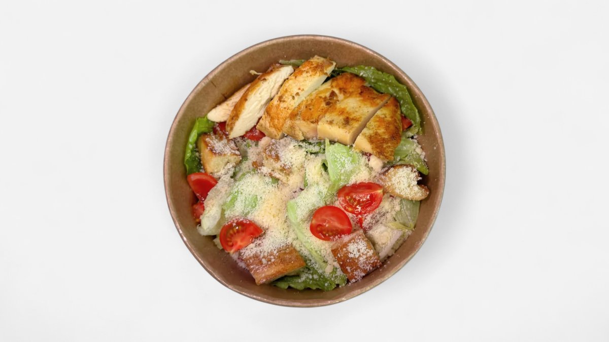 აისბერგი / ახალი რომანოს სალათის ფოთოლი / აიოლის სოუსი / ქართული სტილის შემწვარი ქათმის მკერდი / შოტის კრეკერები / პარმეზანი