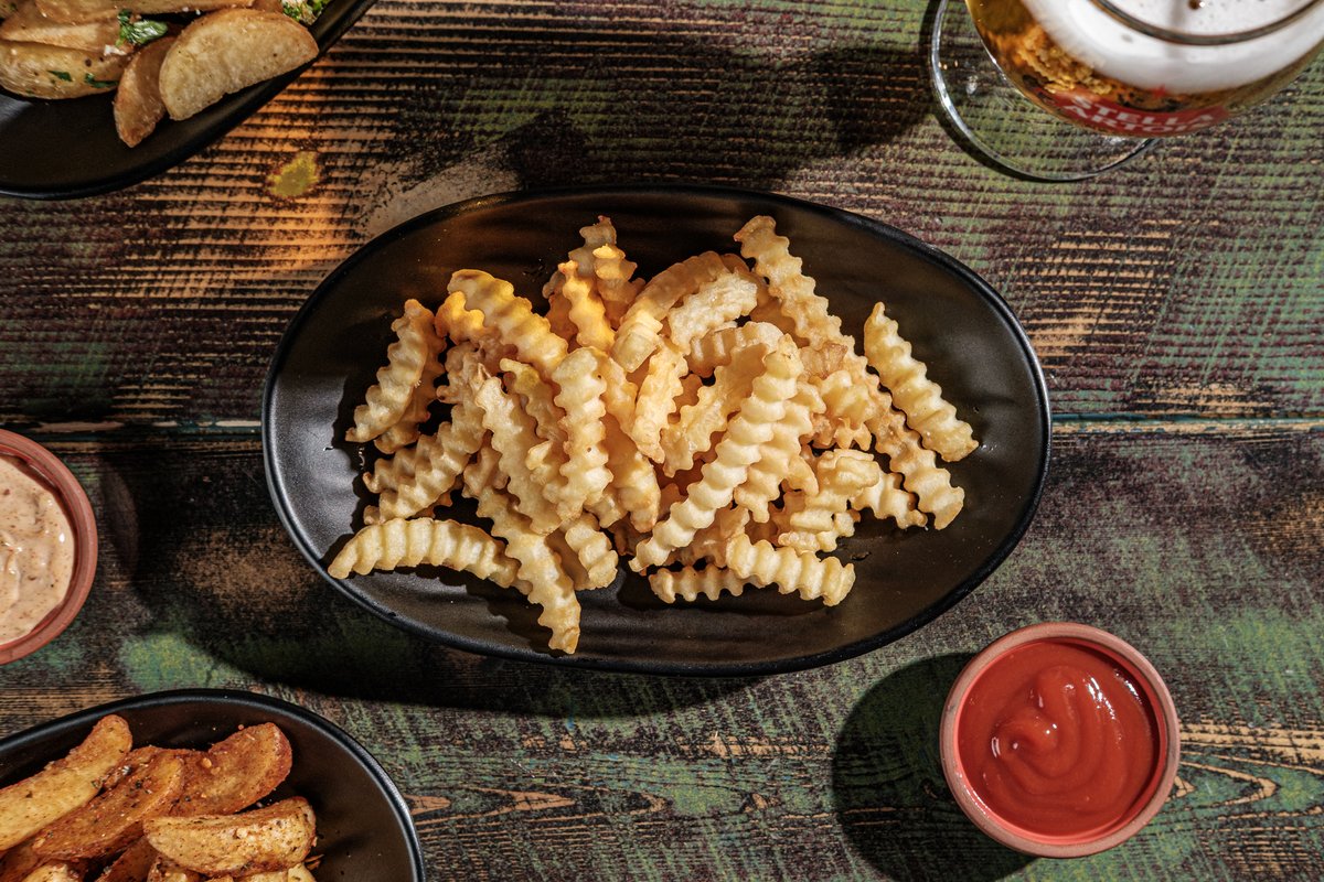 ღორის ნეკნი შებოლილი BBQ სოუსში ,კომბოსტოს მწნილი წითელი,ტორტილას ლავაში,კარტოფილი ფრი მექსიკური სოუსში,პირშუშხა,მარცვლოვანი მდოგვი.