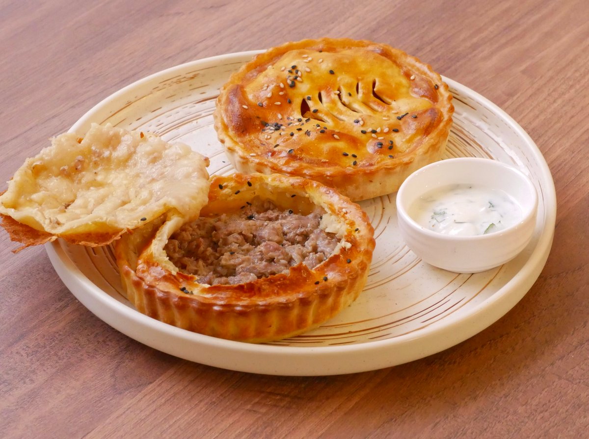 Dough: flour, egg, water. Filling: meat, onion, beef fat, vegetable oil.