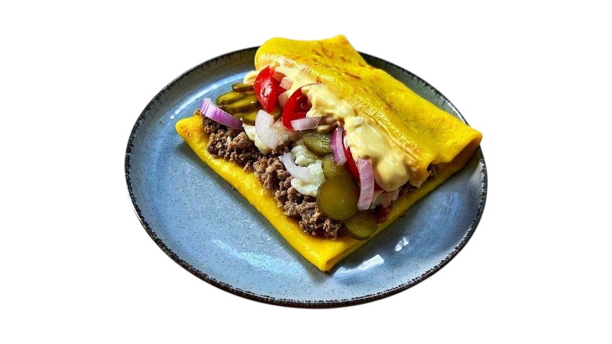 BEEF, PICKLES, TOMATO, CHEESE, SAUCE, CREPE