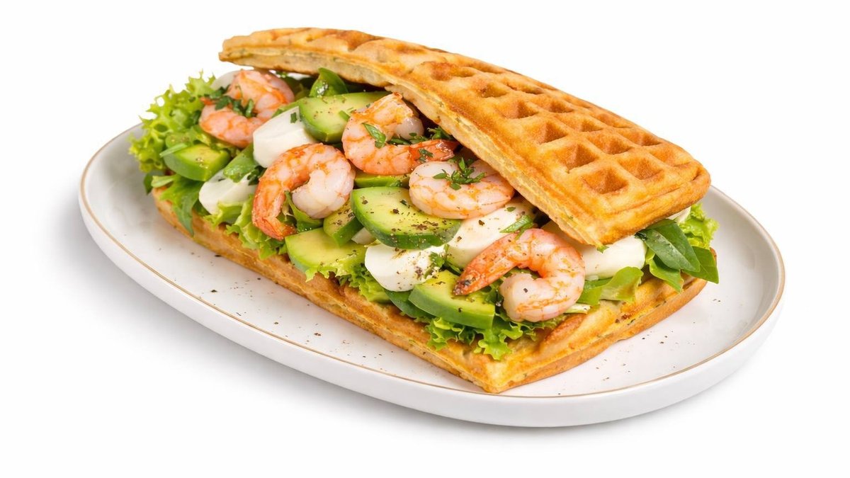 ვაფლის სენდვიჩები კრევეტების მოცარელათი და ავოკადოთი