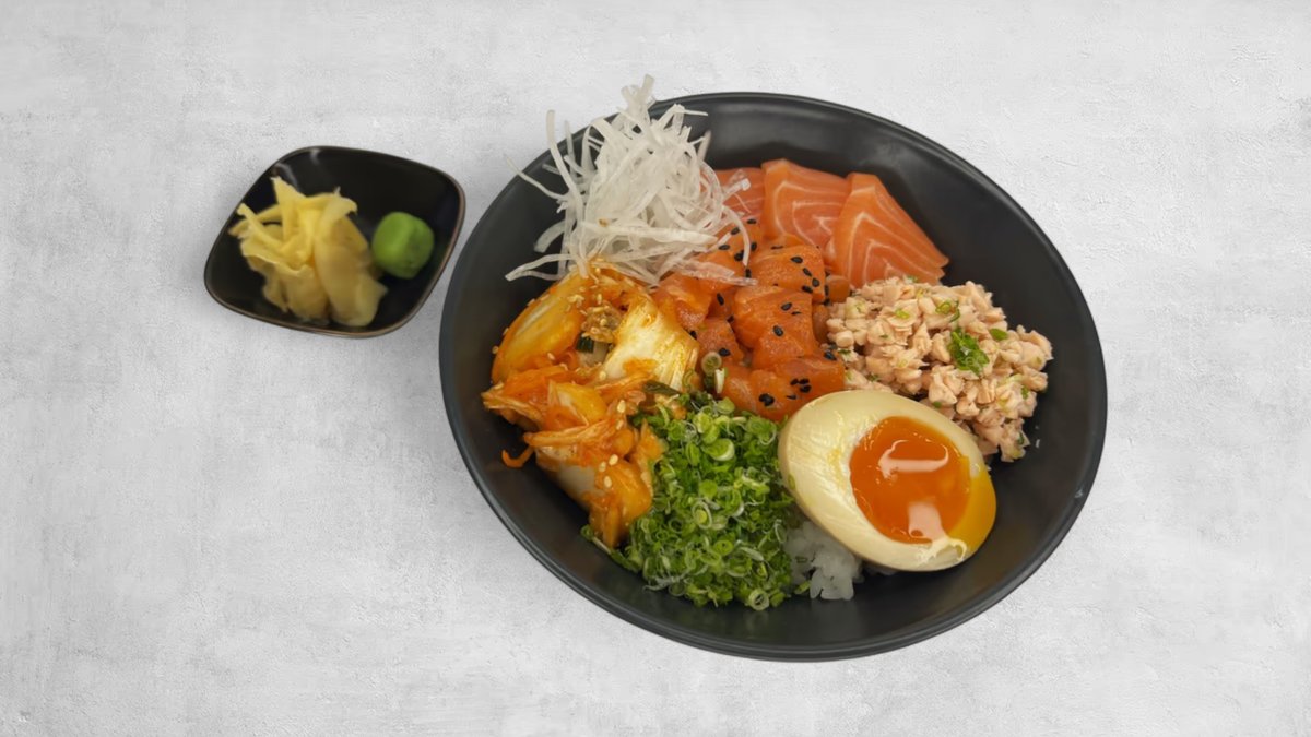 ორთქლზე მომზადეებული ბრინჯი, ორაგული, ცხარე ორაგული, დამარინადებული კვერცხი, კიმჩი, ვასაბი, ჯინჯერი, მწ.ხახვი