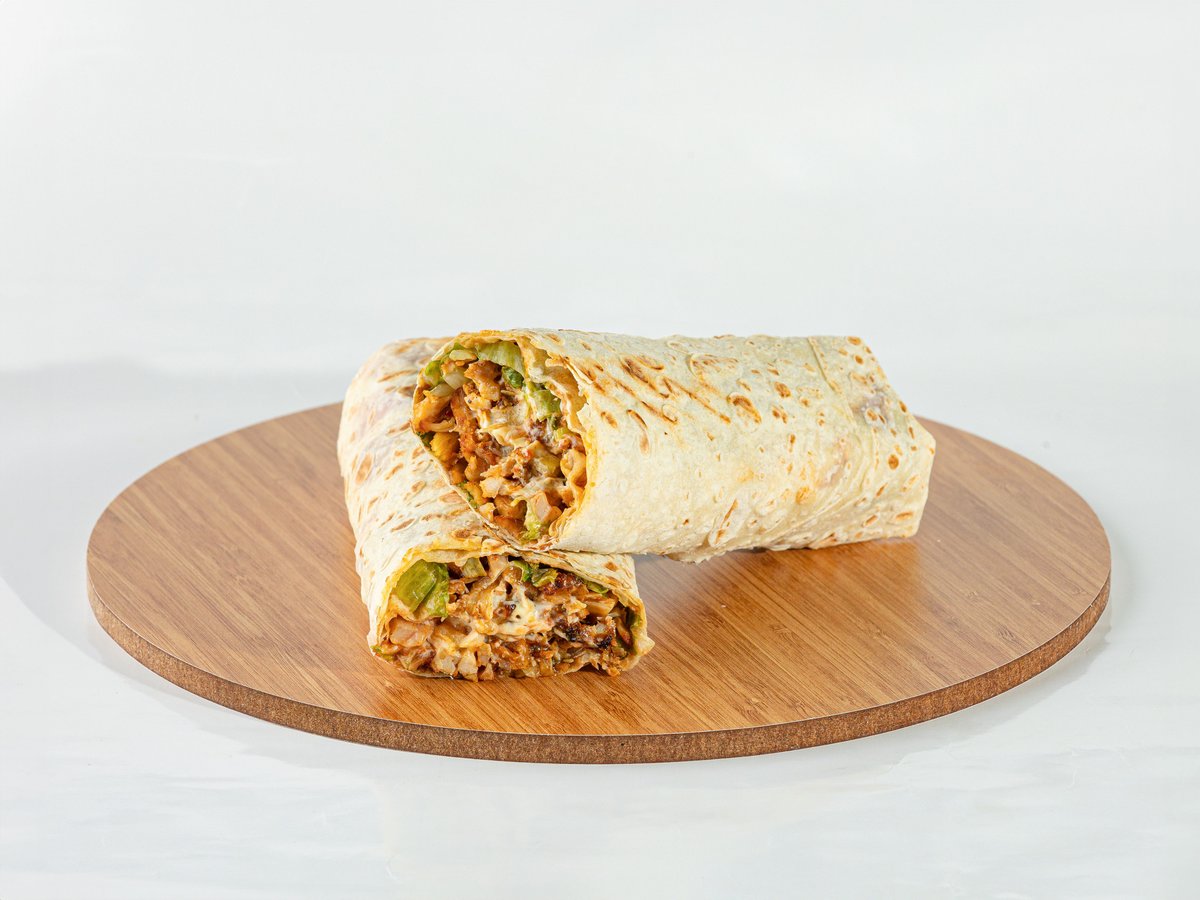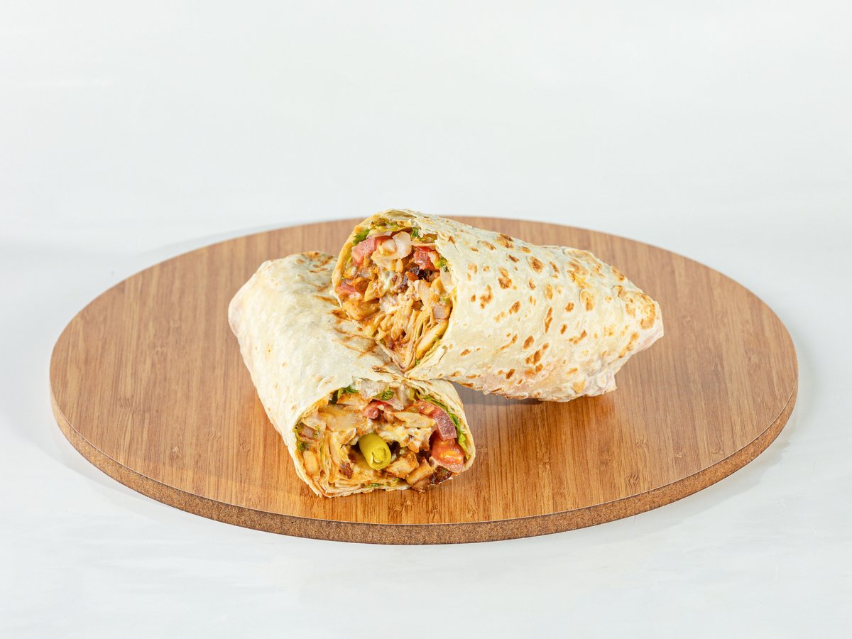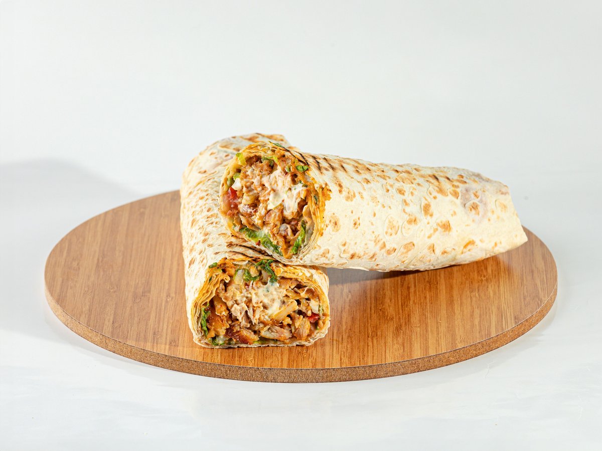 წიწაკა, ხახვი, სალათის ფოთოლი, მაიონეზი, პომიდორი, კეტჩუპი, ლავაში , ქათმის ხორცი.
