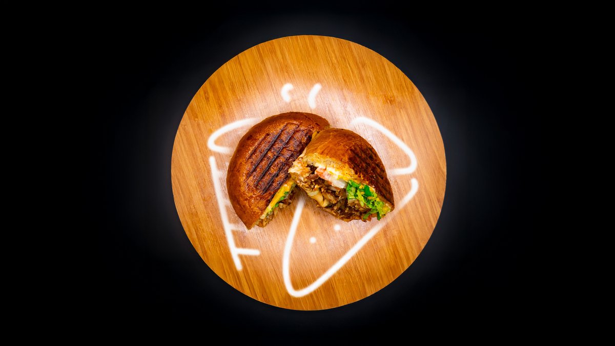 ბურგერი პური, კეტჩუპი მაიონეზი სალათაა ხახვი პომოიდოპრი ჰალაპენიო მჟავე კიტრი