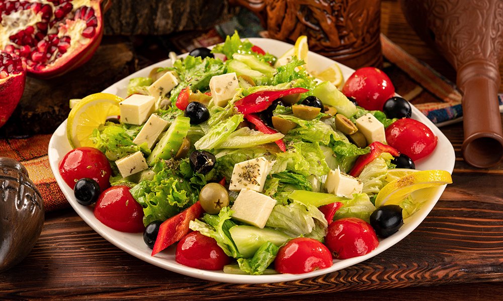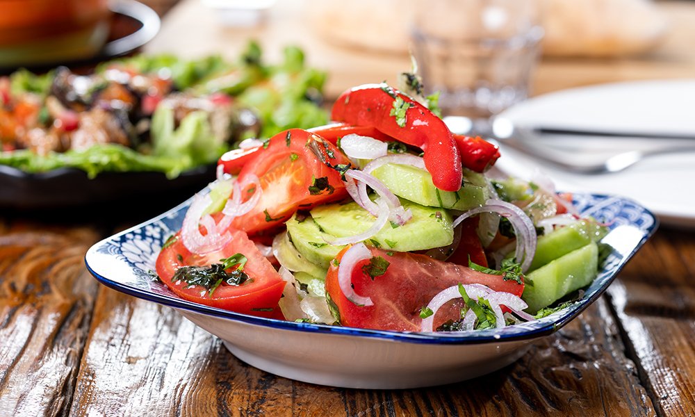 კიტრი-პომიდვრის სალათი ნიგვზით