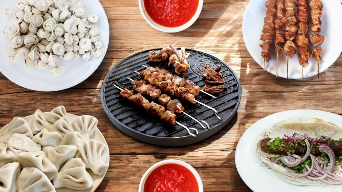 საქონლის ხორცი. სანელებლები. ხახვი. მწვანილი