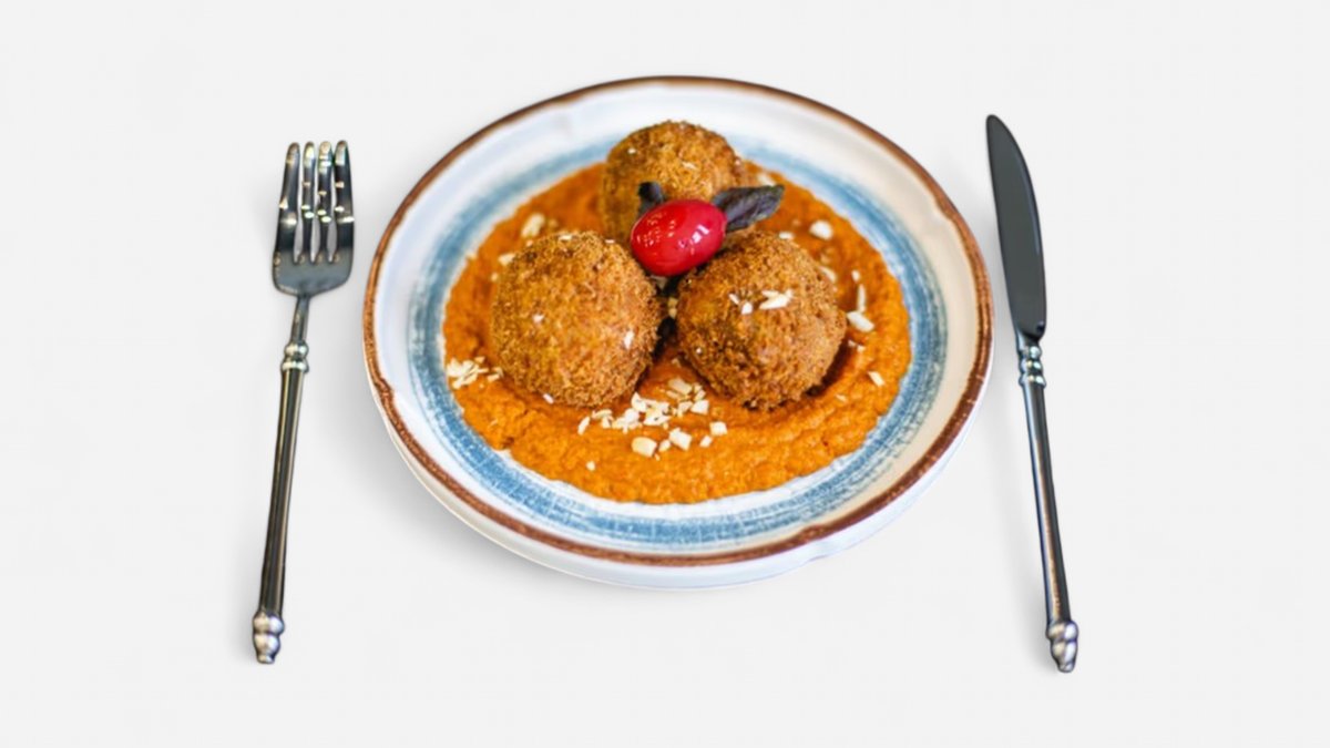 ლობიოს კროკეტი,მწნილით, იმერული სოუსით და მჭადუკებით
