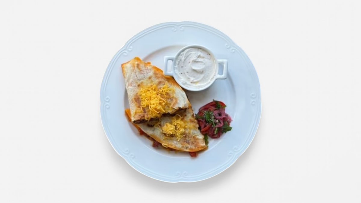 ქათმის ფილე,წითელი ბულგარული,მწვანე ბულგარული,ხახვი,ჩედარი,არაჟანი,პომიდორი,ლიმონი,მწვანე წიწაკა,ნიორი,მარილი,ტორტილა