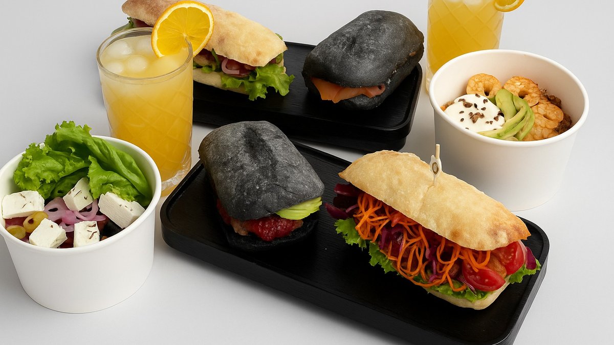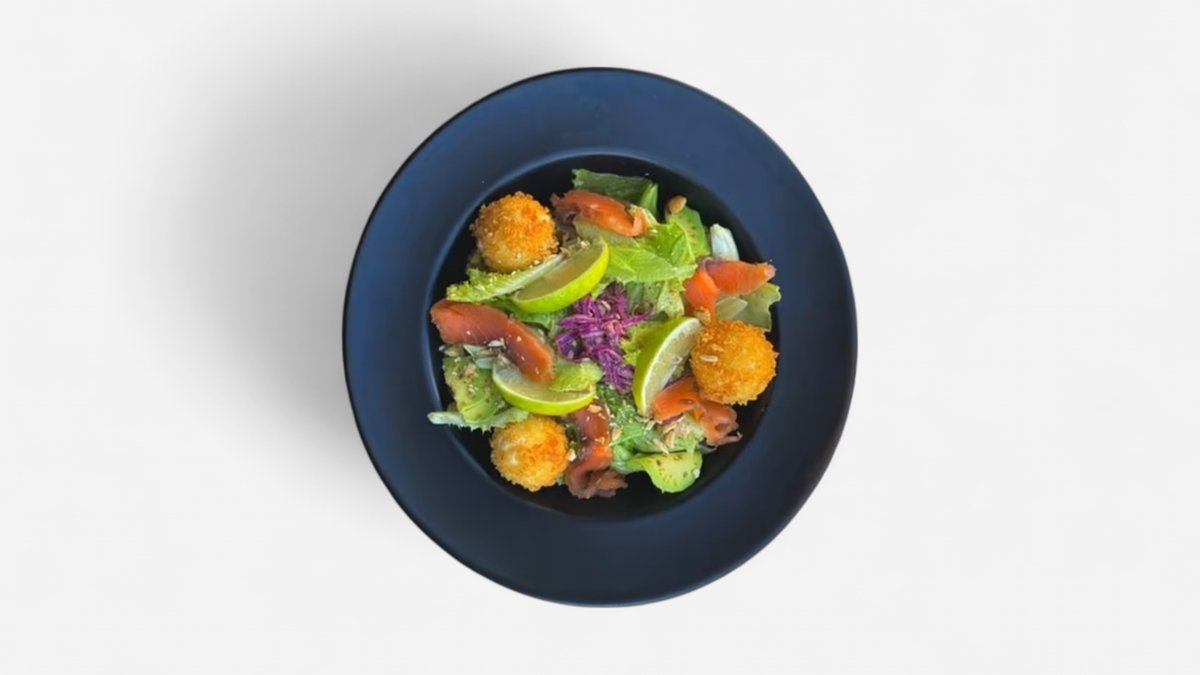 შებოლილი ორაგული,კრემ-ყველი,რუკოლა,ავოკადო,ზეთის ხილი,ბუნებრივ საფუარზე დამზადებული ნახშირის პური