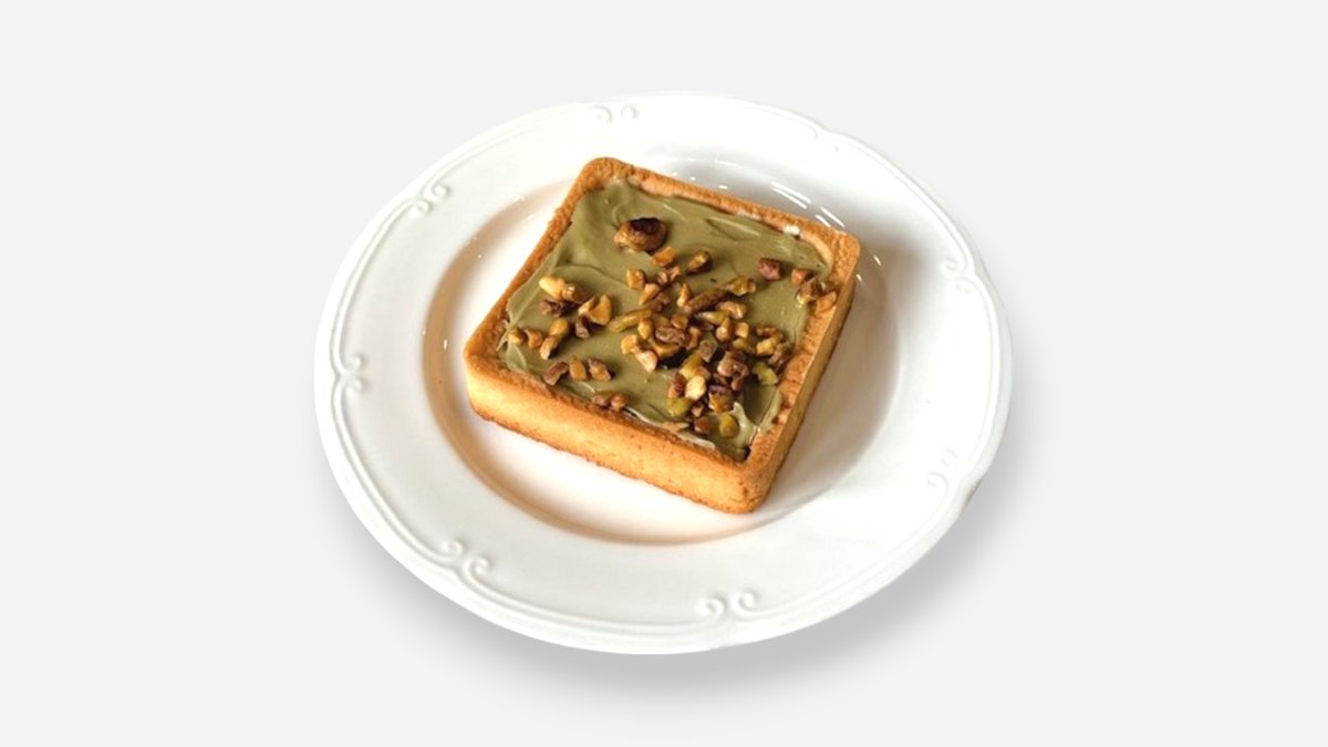 ფისტის პასტა,ნუშის ფქვილით დამზადებული ტარტი,ჟოლო,ფისტა