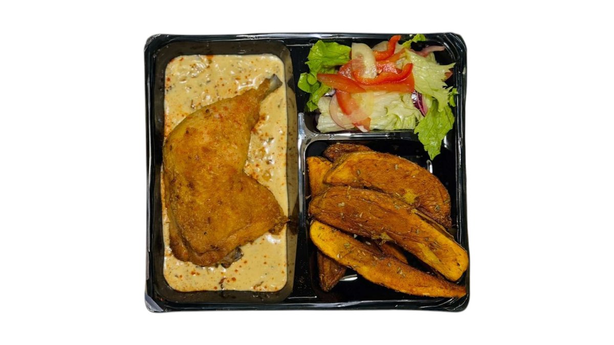 შემწვარი ბარკალი სოუსში, მექსიკური კარტოფილი, სალათის მიქსი