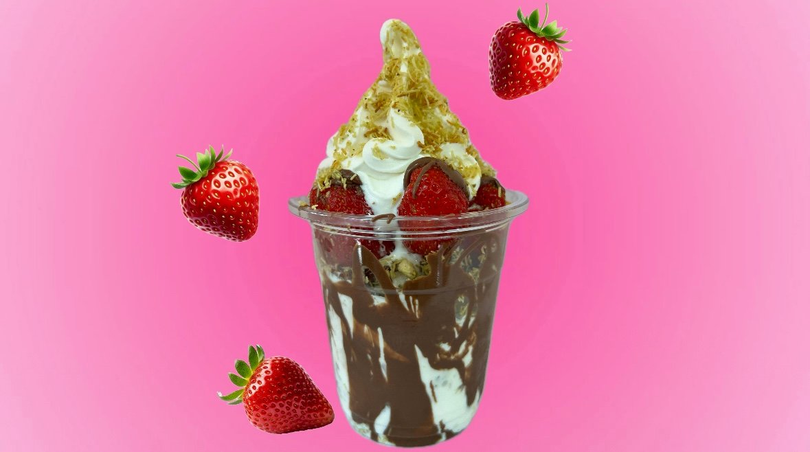 ნაყინი მარწყვის ტოპინგით
